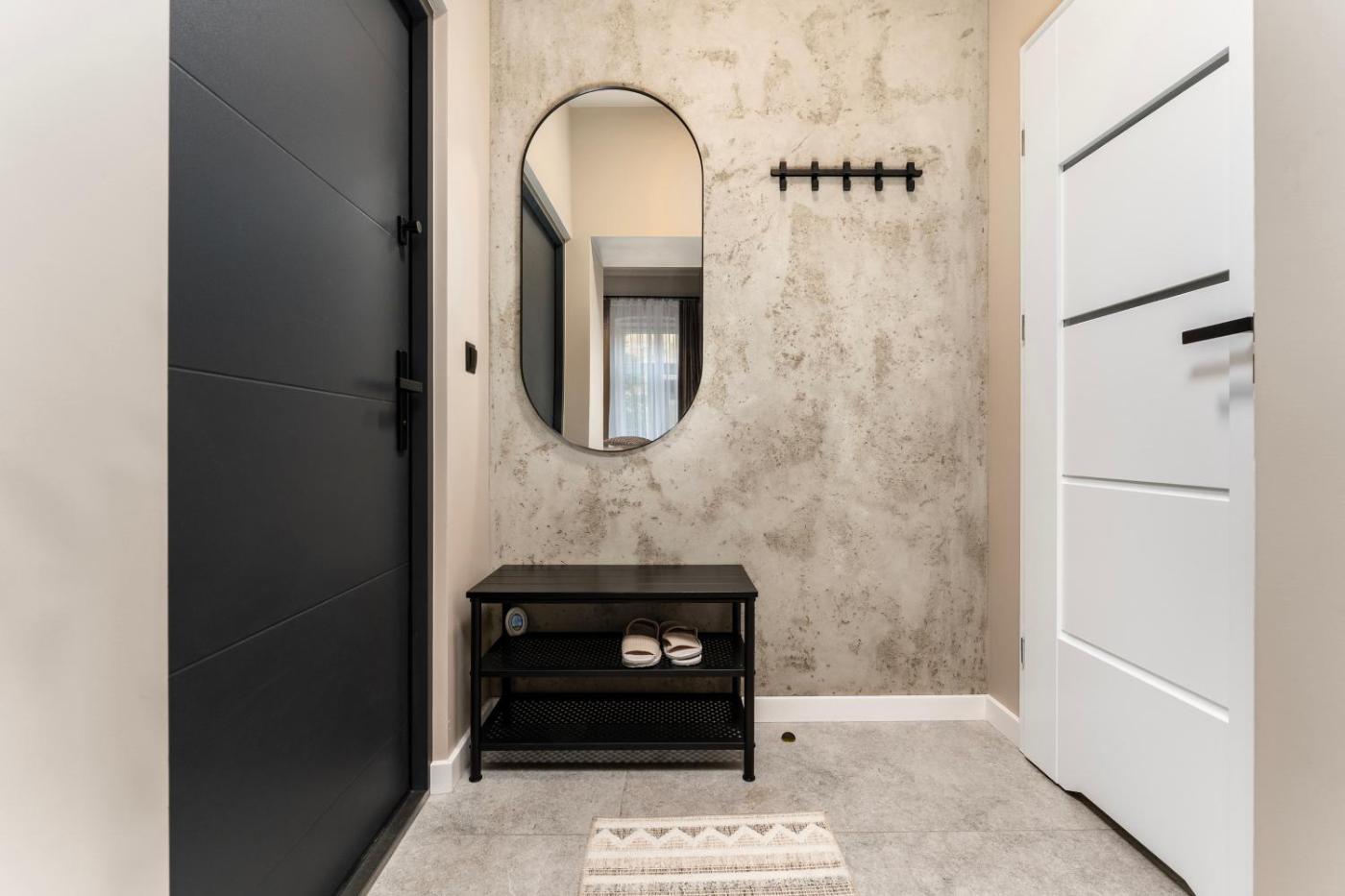 Studio z rozkładaną sofą. Featuring free toiletries, this studio includes a private bathroom with a walk-in shower, a hairdryer and slippers. The well-equipped kitchen has a stovetop, a refrigerator, a dishwasher and kitchenware. The studio features a washing machine, a private entrance, a tea and coffee maker, a wardrobe, as well as a flat-screen TV with streaming services. The unit has 1 bed. Studio - 2 osobowy. Powierzchnia pokoju ok.: 28 mkw.