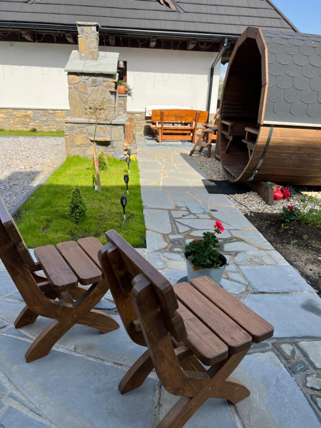 Zaplecze odnowy biologicznej obiektu NR2 Osada pod giewontem obejmuje saunę i wannę z hydromasażem.
