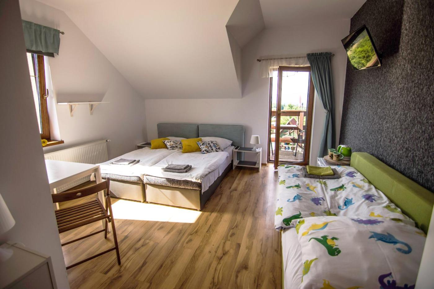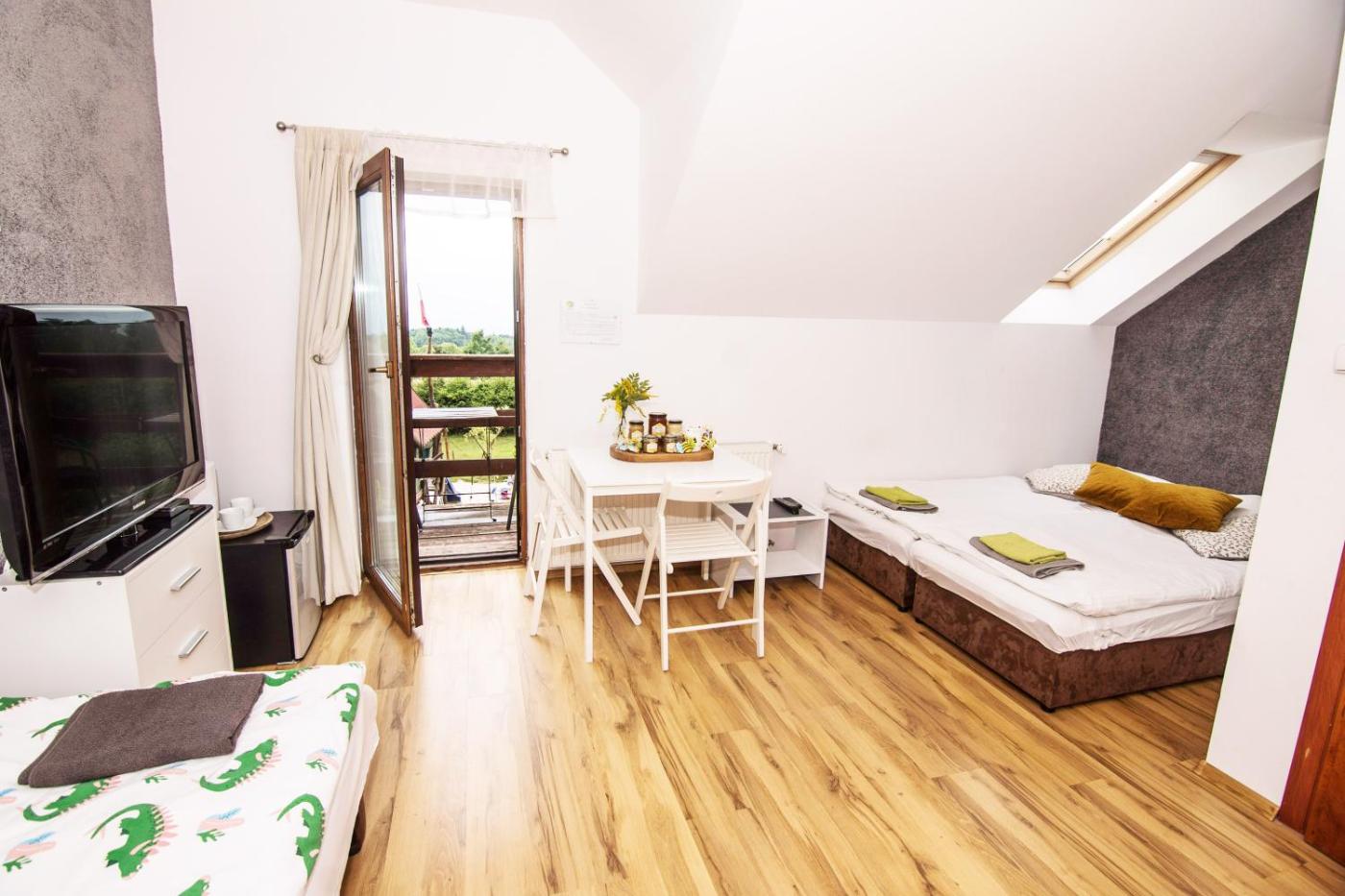 Pokój czteroosobowy z widokiem na góry. The quadruple room provides a high chair for children, heating, as well as a private bathroom boasting a walk-in shower. A kitchen fitted with a refrigerator, kitchenware and a microwave is available for cooking and storing food. The quadruple room features a coffee machine, a dining area, a wardrobe, a flat-screen TV, as well as garden views. Pokój Czteroosobowy - 4 osobowy. Powierzchnia pokoju ok.: 18 mkw.