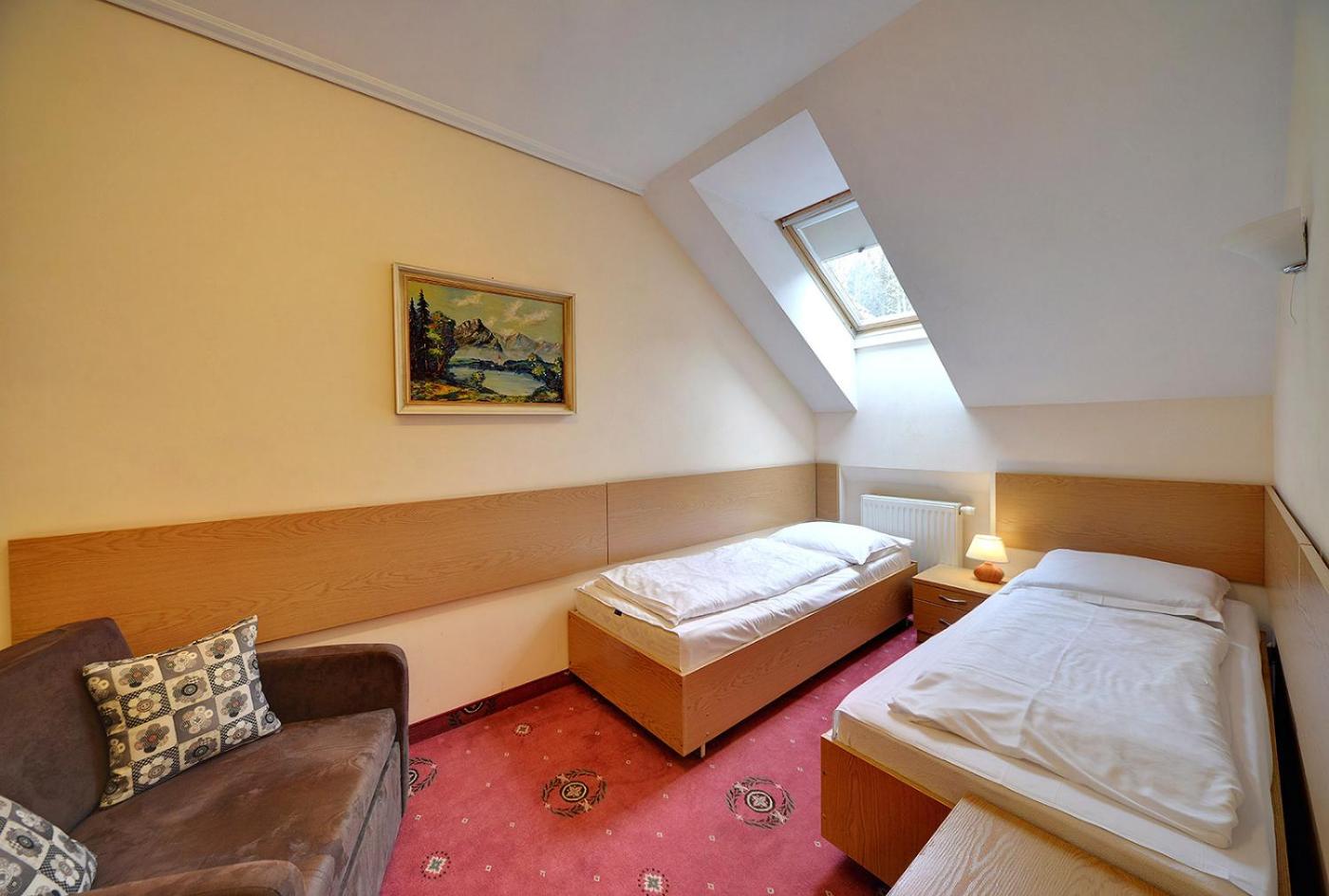 Pokój Trzyosobowy typu Economy. Jest to pokój trzyosobowy ze wspólną łazienką w budynku Potok II. Pokój Trzyosobowy - 3 osobowy. Powierzchnia pokoju ok.: 23 mkw. ;
