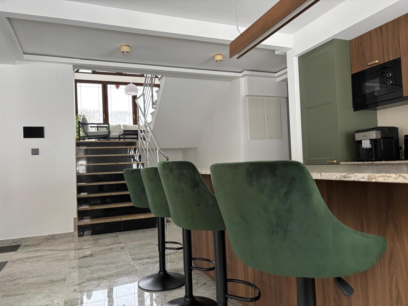 Dom z 7 sypialniami. Guests will have a special experience as this holiday home provides a sauna and a fireplace. Boasting a private entrance, this air-conditioned holiday home includes 1 living room, 7 separate bedrooms and 7 bathrooms with a bath and a shower. Meals can be prepared in the kitchen, which has a stovetop, a refrigerator, a dishwasher and kitchenware. The spacious holiday home offers a washing machine, a tea and coffee maker, a seating area as well as a terrace with mountain views. The unit has 13 beds. Dom wakacyjny - 14 osobowy. Powierzchnia pokoju ok.: 300 mkw.