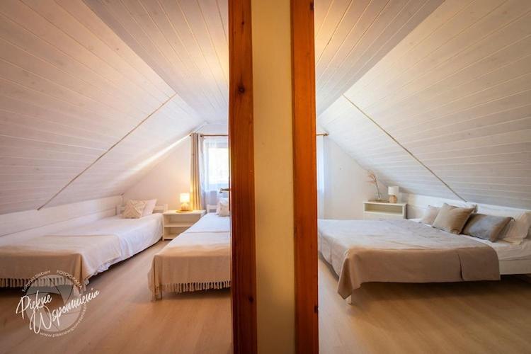 Dom wakacyjny z 2 sypialniami. This holiday home includes 1 living room, 2 separate bedrooms and 1 bathroom with a shower. Guests will find a stovetop, a refrigerator and a tea and coffee maker in the kitchen. The holiday home also features a barbecue. Boasting a terrace with garden views, this holiday home also offers a washing machine and a TV with cable channels. The unit has 5 beds. Dom wakacyjny - 4 osobowy. Powierzchnia pokoju ok.: 60 mkw.