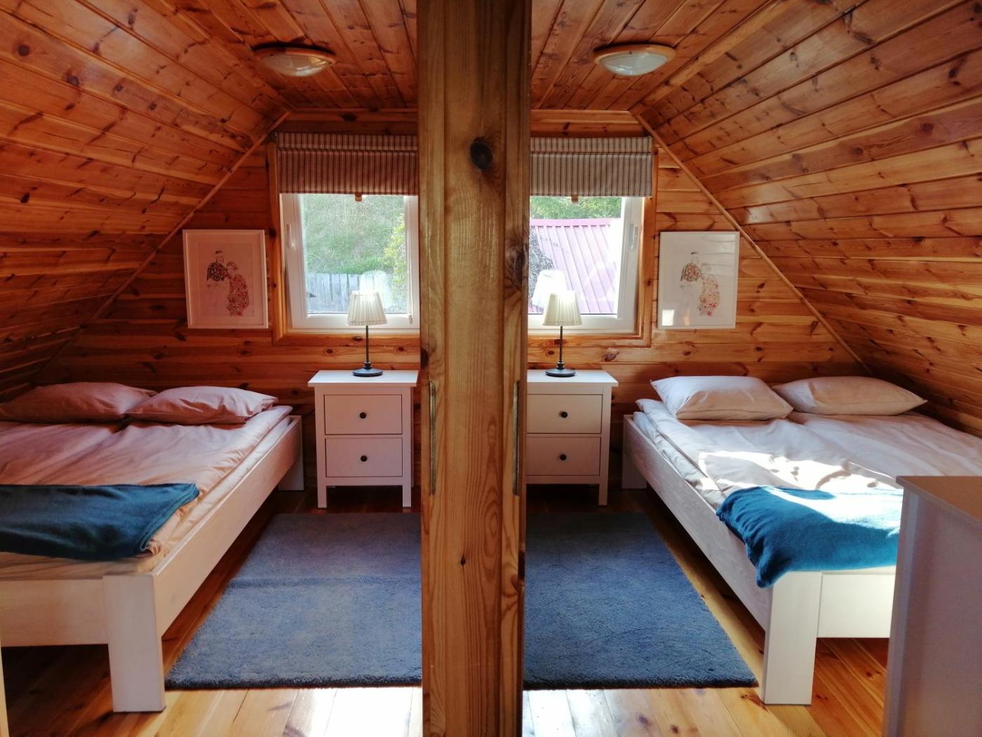 Domek. Featuring a private entrance, this chalet is comprised of 1 living room, 2 separate bedrooms and 1 bathroom with a shower and a hairdryer. Guests will find a stovetop, a refrigerator, kitchenware and a microwave in the fully equipped kitchenette. The chalet also has a barbecue. Boasting a terrace with garden views, this chalet also offers a tea and coffee maker and a flat-screen TV. The unit offers 3 beds. Domek - 6 osobowy. Powierzchnia pokoju ok.: 5 mkw.
