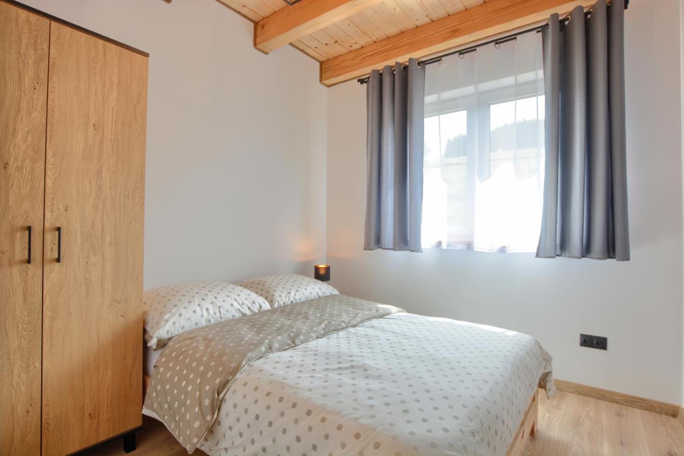 Dom z 2 sypialniami. Boasting a private entrance, this holiday home features 1 living room, 2 separate bedrooms and 1 bathroom with a shower and a hairdryer. Guests will find a refrigerator and a microwave in the kitchen. The holiday home also comes with a barbecue. Featuring a terrace with mountain views, this holiday home also features a dining area and a flat-screen TV. The unit has 4 beds. Dom wakacyjny - 6 osobowy. Powierzchnia pokoju ok.: 35 mkw.
