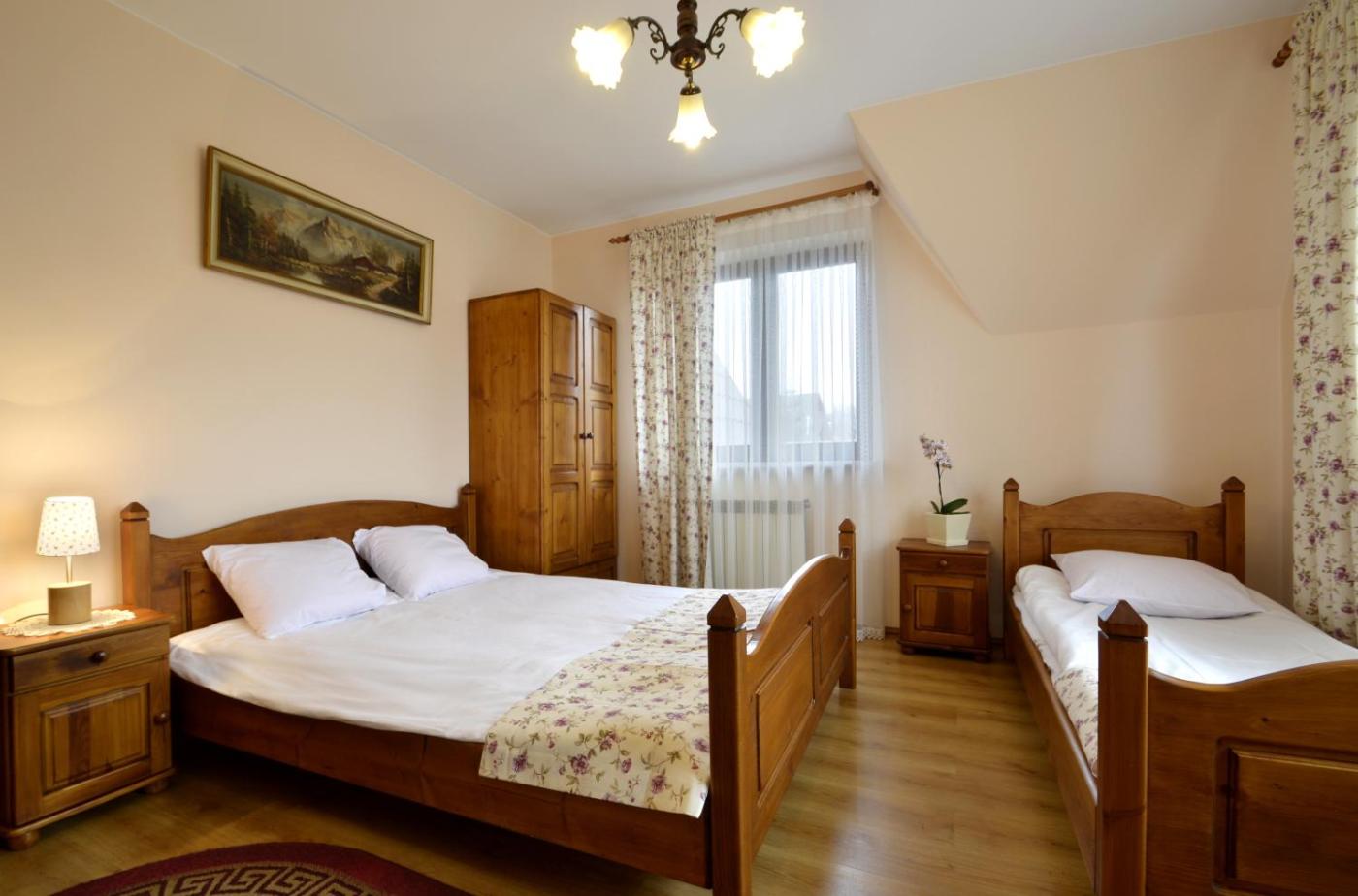 Pokój Czteroosobowy. The quadruple room features a wardrobe, an electric kettle, as well as a private bathroom boasting a shower and a hairdryer. This quadruple room provides heating, a flat-screen TV and garden views. The unit has 3 beds. Pokój Czteroosobowy - 4 osobowy. Powierzchnia pokoju ok.: 20 mkw. ;