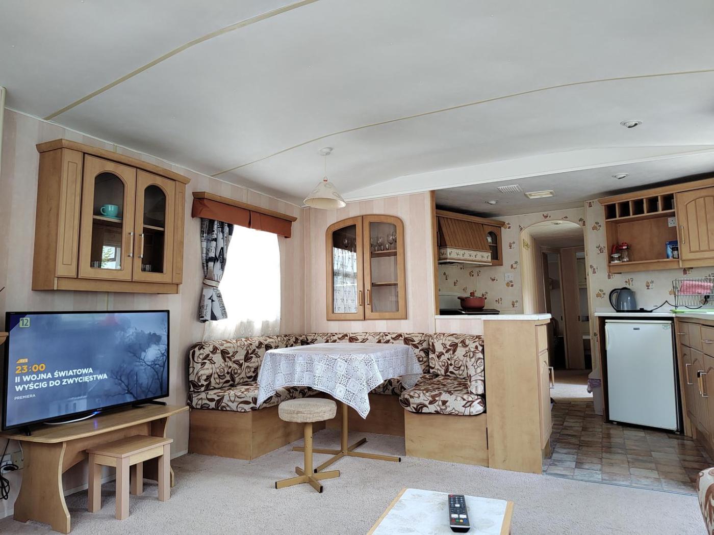 Domek holenderski. Boasting a private entrance, this mobile home comes with 1 living room, 3 separate bedrooms and 1 bathroom with a shower and a hairdryer. Guests will find a stovetop, a refrigerator and kitchenware in the kitchen. The mobile home also includes a barbecue. Featuring a terrace with garden views, this mobile home also features a tea and coffee maker and a flat-screen TV. The unit has 4 beds. Domek holenderski - 6 osobowy. Powierzchnia pokoju ok.: 44 mkw.