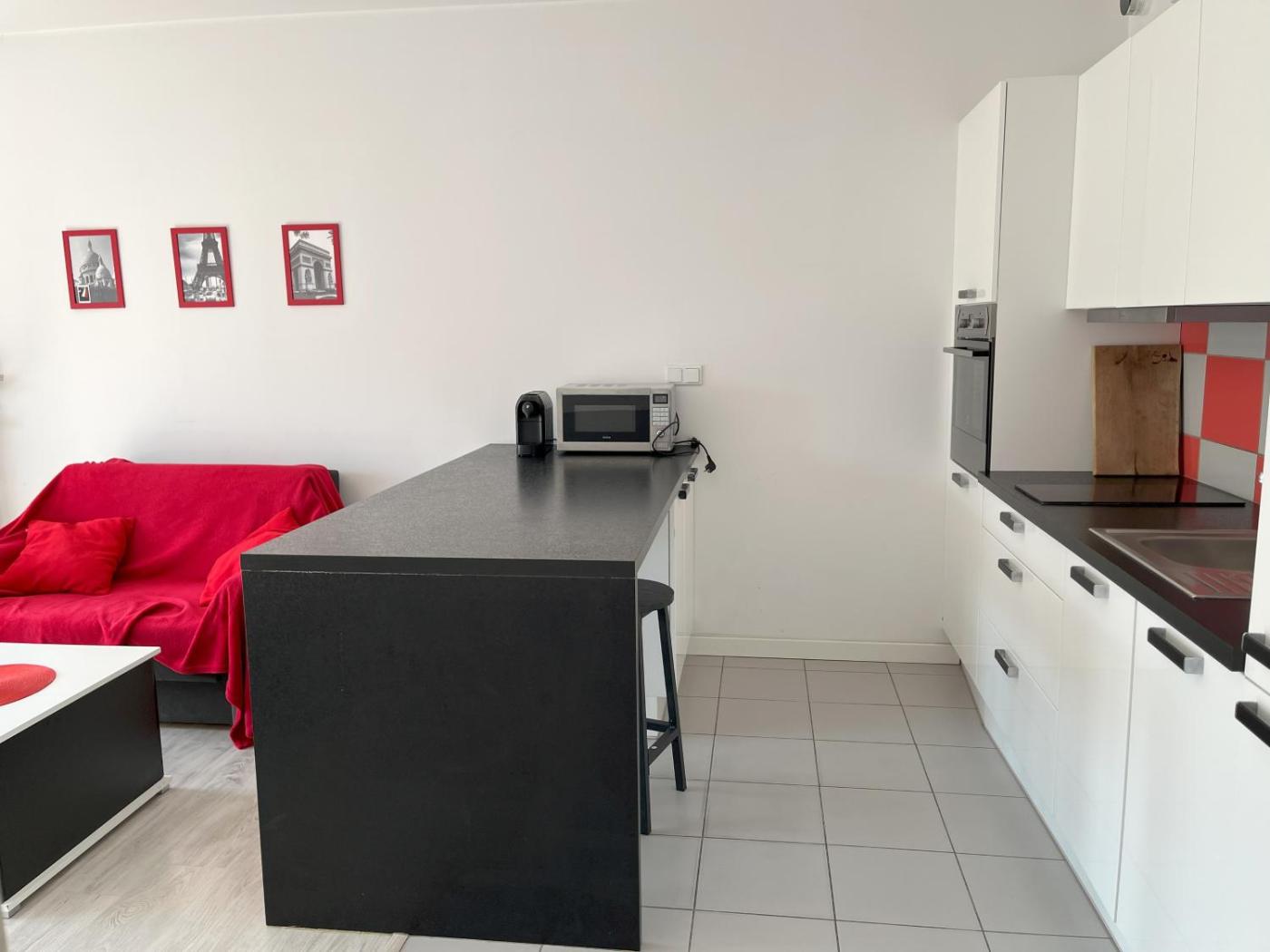 Oferta apartamentu obejmuje sypialnię (1), salon, aneks kuchenny z pełnym wyposażeniem, w tym lodówką i ekspresem do kawy, a także łazienkę (1) z prysznicem oraz bezpłatnym zestawem kosmetyków. W apartamencie zapewniono ręczniki i pościel.