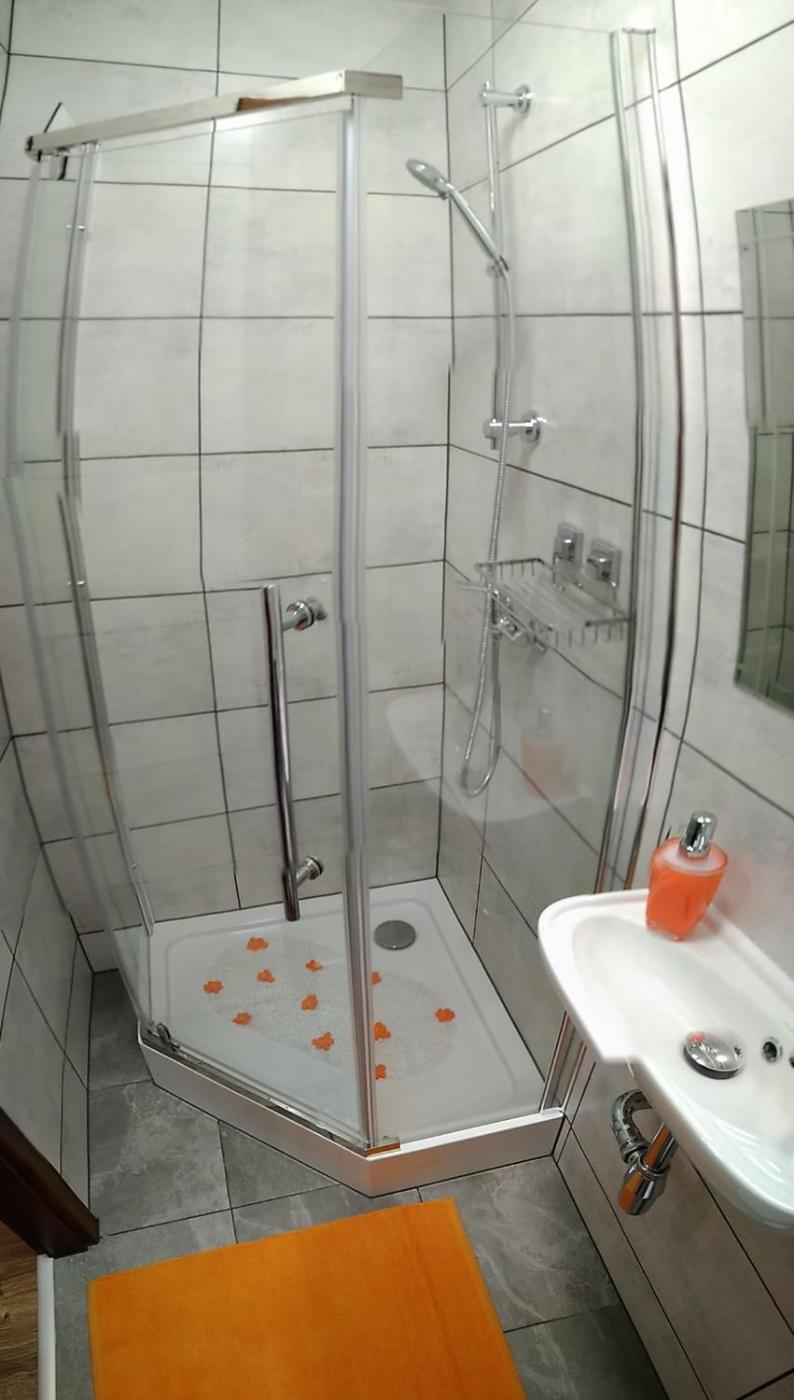 Apartament z prysznicem. The apartment has 1 bedroom, 1 bathroom and a kitchenette. The apartments kitchenette, which features a refrigerator and kitchenware, is available for cooking and storing food. This apartment features a wardrobe and a flat-screen TV. The unit has 1 bed. Apartament - 2 osobowy. ;