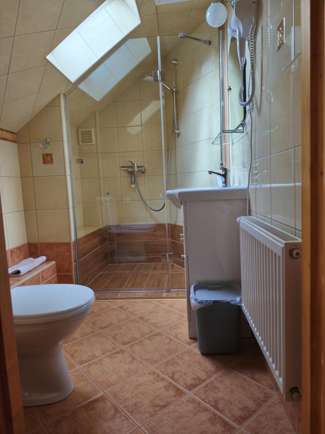 Pokój dwuosobowy z prywatną łazienką. The double room features a tea and coffee maker, a wardrobe, as well as a private bathroom boasting a shower and a hairdryer. This double room has parquet floors, heating, a flat-screen TV and garden views. The unit has 1 bed. Pokój Dwuosobowy - 2 osobowy. Powierzchnia pokoju ok.: 13 mkw. ;
