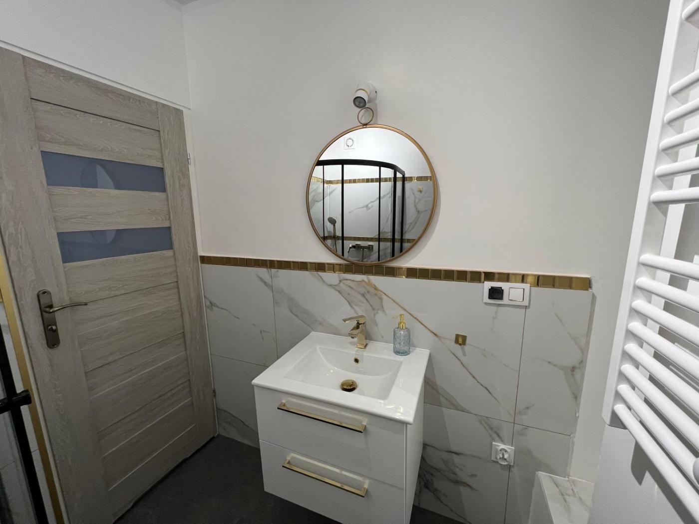 Studio. The studio provides a wardrobe, parquet floors, as well as a private bathroom featuring a shower and a hairdryer. Guests can make meals in the kitchen that is equipped with a stovetop, a refrigerator, kitchenware and a tea and coffee maker. This studio offers heating and a flat-screen TV. The unit offers 1 bed. Studio - 2 osobowy. Powierzchnia pokoju ok.: 16 mkw.